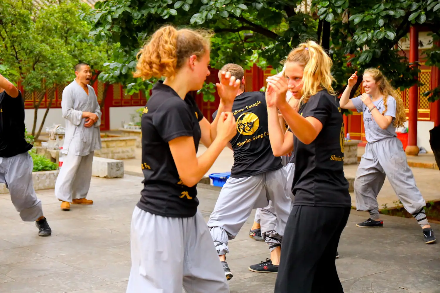 "Wow the temples were beautiful, such a lovely place to train at. And you live on the temple grounds too. There was an option for a private room but I opted for the dorm and I honestly had no problems with it. The beds were bunk beds and you used the top bunk for your belongings. The rooms opened directly onto the temple grounds so there would be tourists walking around right outside the rooms but we just made sure we padlocked the doors if we weren’t nearby. The temperature was perfect for training, not too hot (although you get quite sweaty!) and not too cold. The timetable is very structured so you fall into the routine very quickly. Even in my 2 weeks I got to experience a lot, I still barely scratched the surface though, so if you are serious about kung fu, stay for longer than 2 weeks! Some of the classes were very tough e.g. hard qigong! But the forms felt great to perform. We also trained in tai chi, self-defence and sanda (kickboxing). If you stayed for longer I expect you could also learn weapons. The two shifus were brilliantly skilled martial artists and kind-hearted! The other students were also very helpful. I truly felt immersed in the Shaolin kung fu experience."