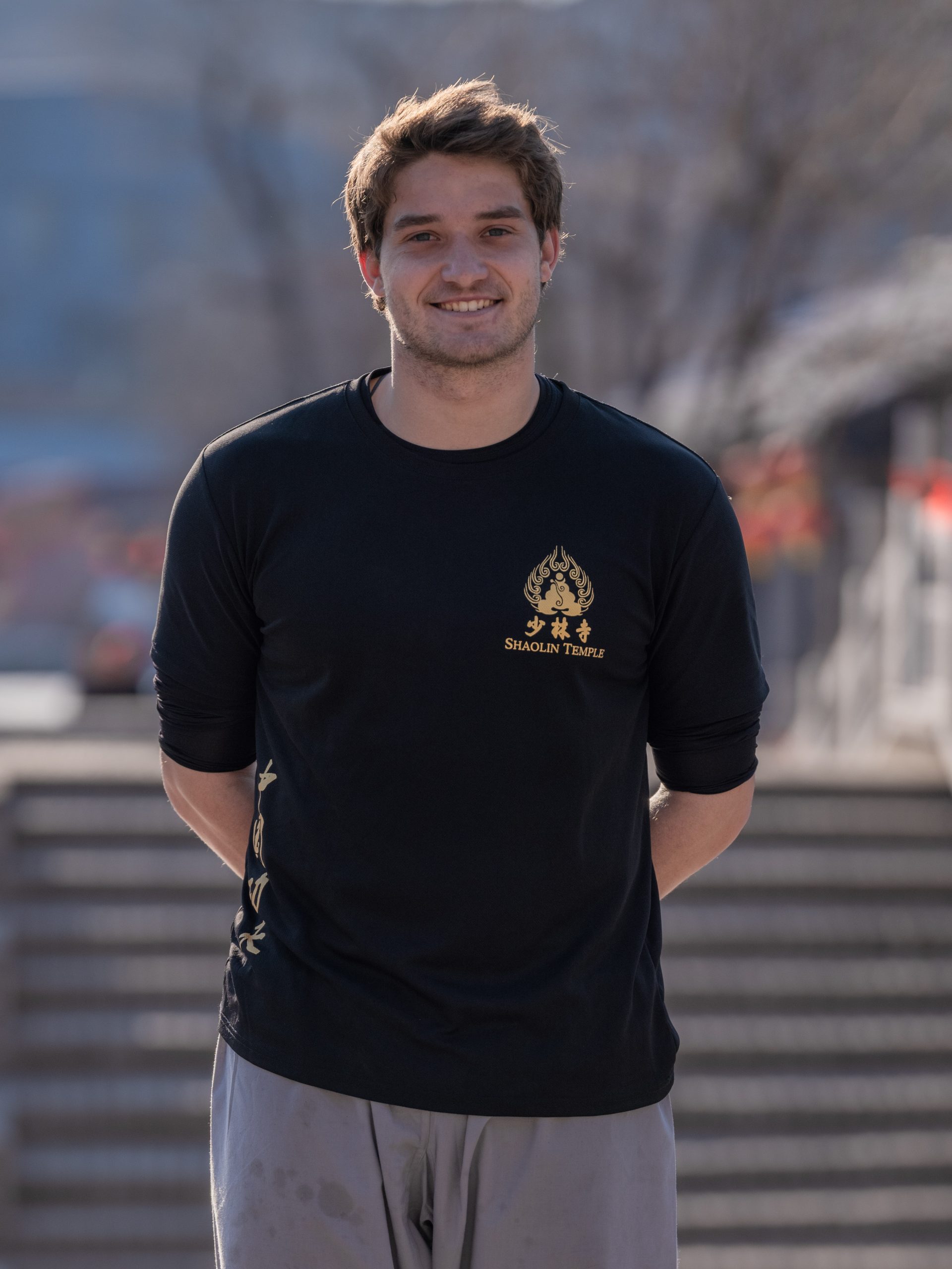 I'm not at six months, and I do not want to leave this place. I have many good friends here. On my first day, when I arrived with my father, I was worried about the training. My first day was Hard Qigong, and I could not sleep. My arms were in pain, but in the end, I said to myself, "No pain, no gain, no Kung Fu." This is why I came here.