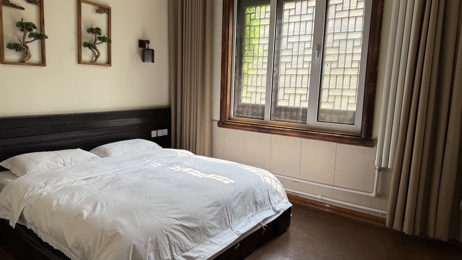 The traditional courtyard Kung Fu style dorm accommodation is suitable for long-term male students only (six months or more) during warmer months (April to October). The maximum occupancy is 4 people per room. It includes shared washing facilities with a boiler shower and western style toilet. AC is available for an additional fee of 800 RMB per room per month.